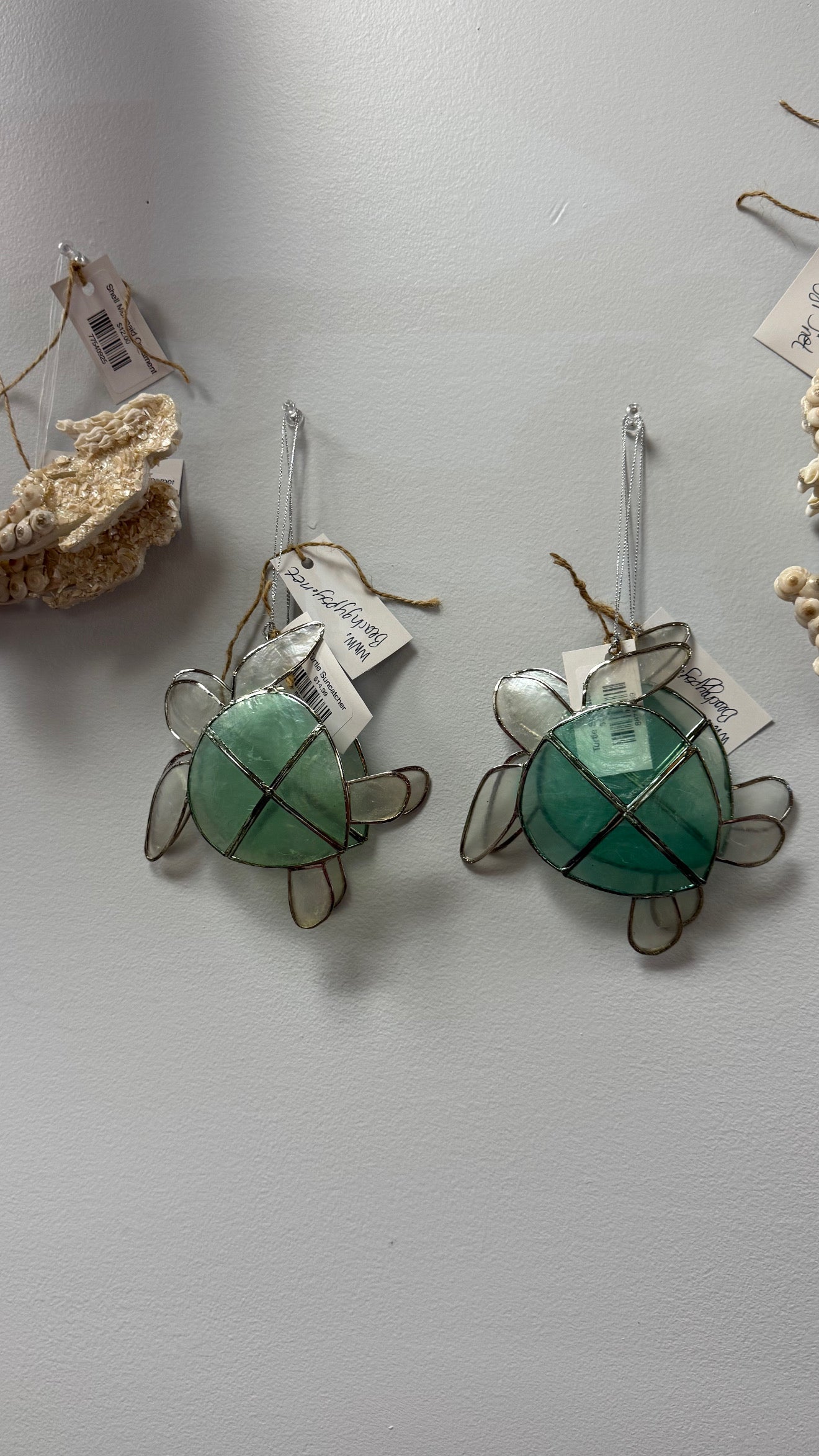 Turtle suncatcher with capriz shells. Can be used for Christmas trees or window decoration.
